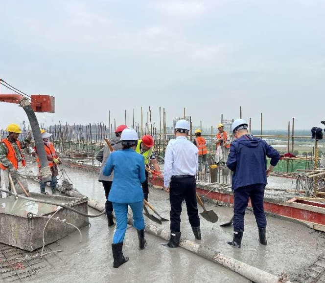 近日,伴隨著最后一車混凝土的澆筑完畢,在業(yè)主、監(jiān)理及公司領(lǐng)導(dǎo)的見證下,安徽二建第一分公司鳳臺州來地產(chǎn)二號地塊項(xiàng)目3#樓工程正式完成主體結(jié)構(gòu)的封頂。