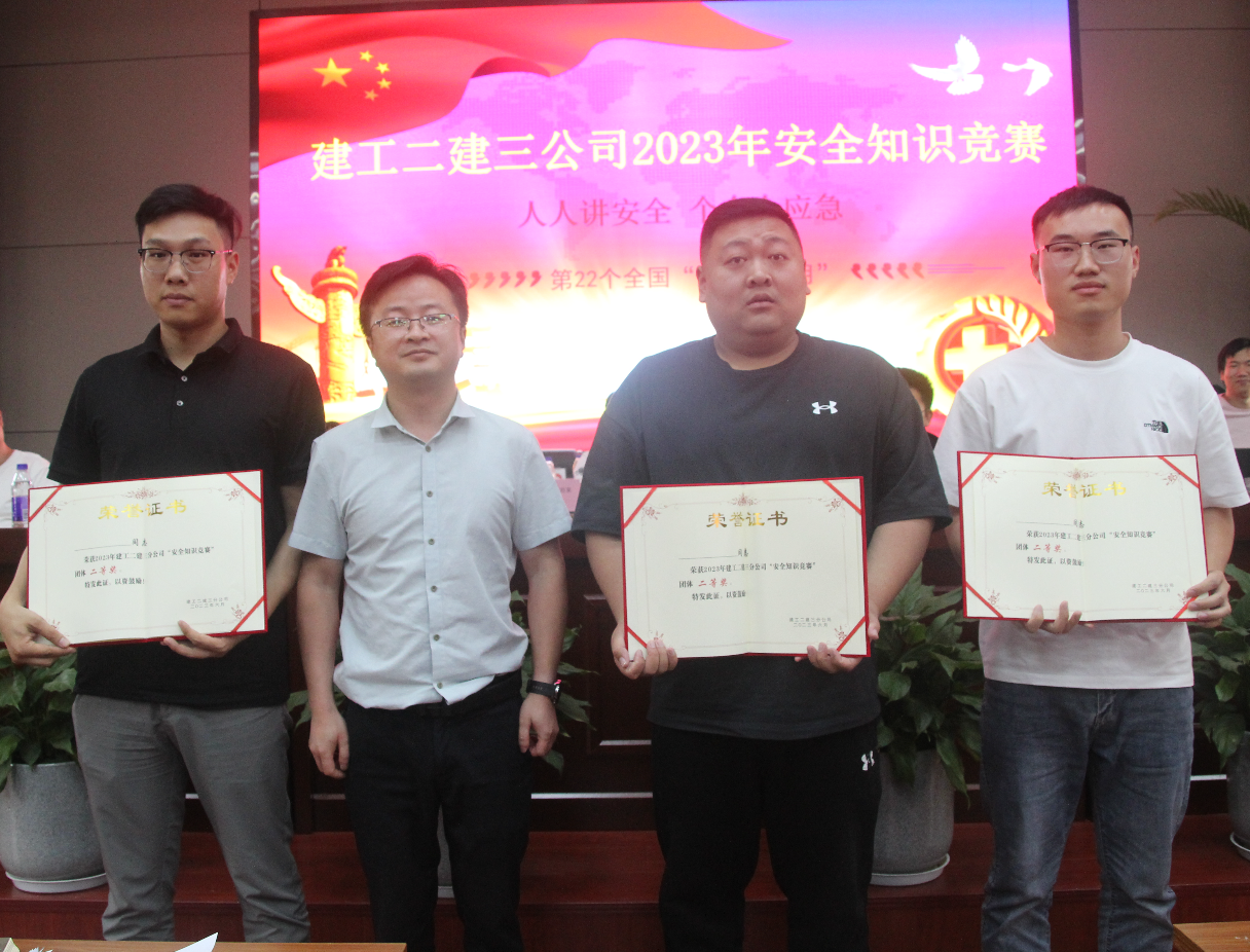 整個(gè)競(jìng)賽過(guò)程氣氛熱烈,賽序井然。選手沉著冷靜、機(jī)智應(yīng)戰(zhàn),既展示了選手們豐富的安全知識(shí)儲(chǔ)備,更體現(xiàn)了公司員工的從業(yè)素養(yǎng)和團(tuán)隊(duì)精神。搶答環(huán)節(jié)把活動(dòng)推向了高潮,賽場(chǎng)氣氛活躍而緊張,選手們?nèi)σ愿啊^力搶奪,隊(duì)伍比分拉開差距。最終,由宿遷中南紫云集項(xiàng)目代表隊(duì)拔得頭籌,銅陵吾悅?cè)A府項(xiàng)目代表隊(duì)獲得第二名,分公司機(jī)關(guān)代表隊(duì)獲得第三名。