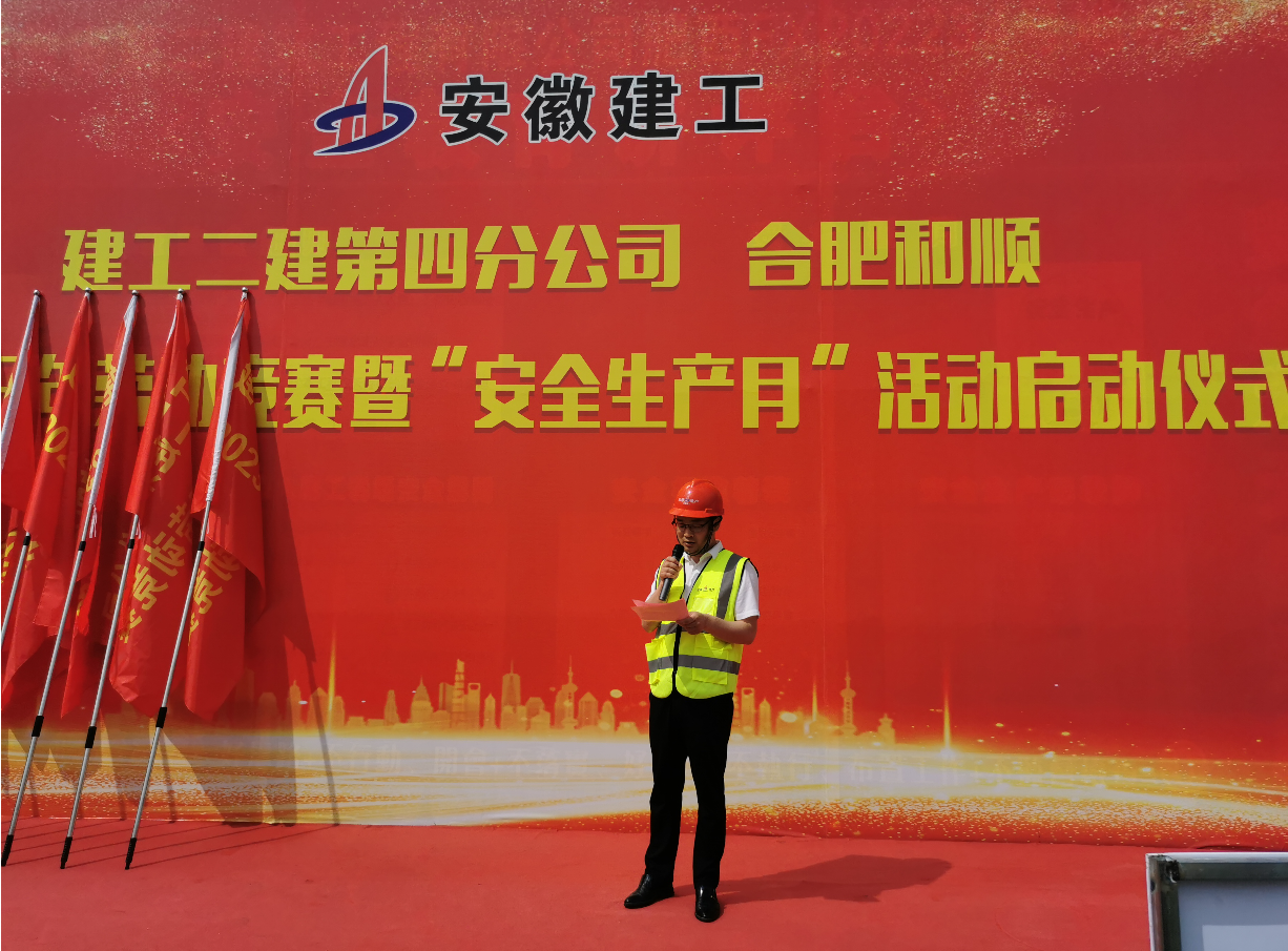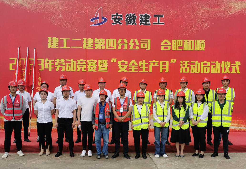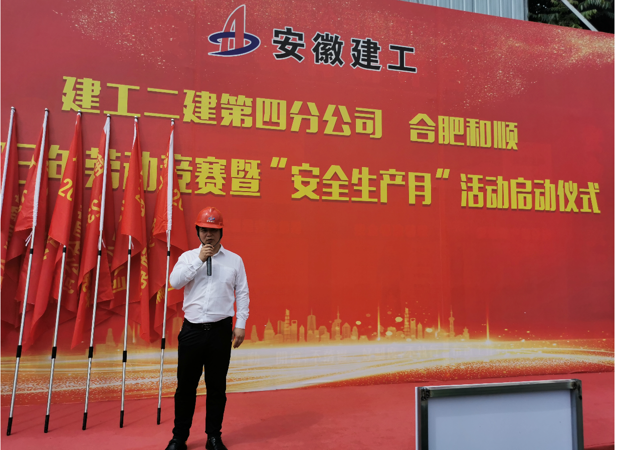 本次勞動(dòng)競(jìng)賽旨在充分調(diào)動(dòng)廣大建設(shè)者的積極性,引導(dǎo)廣大職工充分發(fā)揮勞模精神、勞動(dòng)精神、工匠精神,安全、優(yōu)質(zhì)、高效地圓滿完成施工任務(wù)。活動(dòng)現(xiàn)場(chǎng),第四分公司生產(chǎn)副經(jīng)理周文建作動(dòng)員講話,合肥和順總經(jīng)理沈印、越秀地產(chǎn)項(xiàng)目總經(jīng)理董大澤分別發(fā)言,第四分公司質(zhì)量副經(jīng)理劉韌宣讀2023年勞動(dòng)競(jìng)賽實(shí)施方案,參賽項(xiàng)目代表付奎表態(tài)發(fā)言,參加活動(dòng)的領(lǐng)導(dǎo)為各參賽項(xiàng)目授旗。