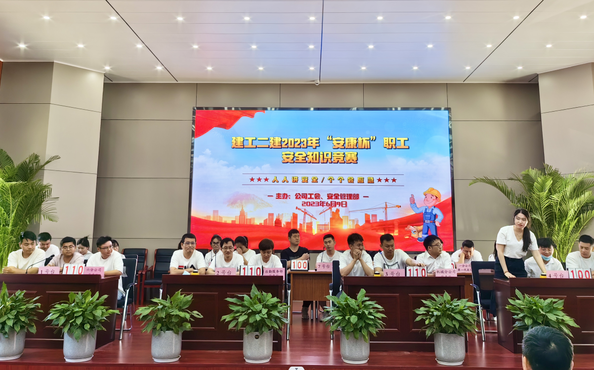 今年六月是第22個(gè)全國(guó)“安全生產(chǎn)月”,主題為“人人講安全,個(gè)個(gè)會(huì)應(yīng)急”。6月9日上午,公司工會(huì)牽頭,與安全管理部聯(lián)合舉辦了建工二建2023年“安康杯”職工安全生產(chǎn)知識(shí)競(jìng)賽活動(dòng)。安全知識(shí)競(jìng)賽的開展,旨在通過以賽促學(xué)、以學(xué)促用,大力弘揚(yáng)“生命至上、安全為天”的安全理念,加強(qiáng)安全知識(shí)宣傳教育,切實(shí)增強(qiáng)廣大職工安全生產(chǎn)意識(shí)和安全管理知識(shí)水平。公司黨委副書記、工會(huì)主席王軍,副總經(jīng)理代鵬飛出席活動(dòng)。