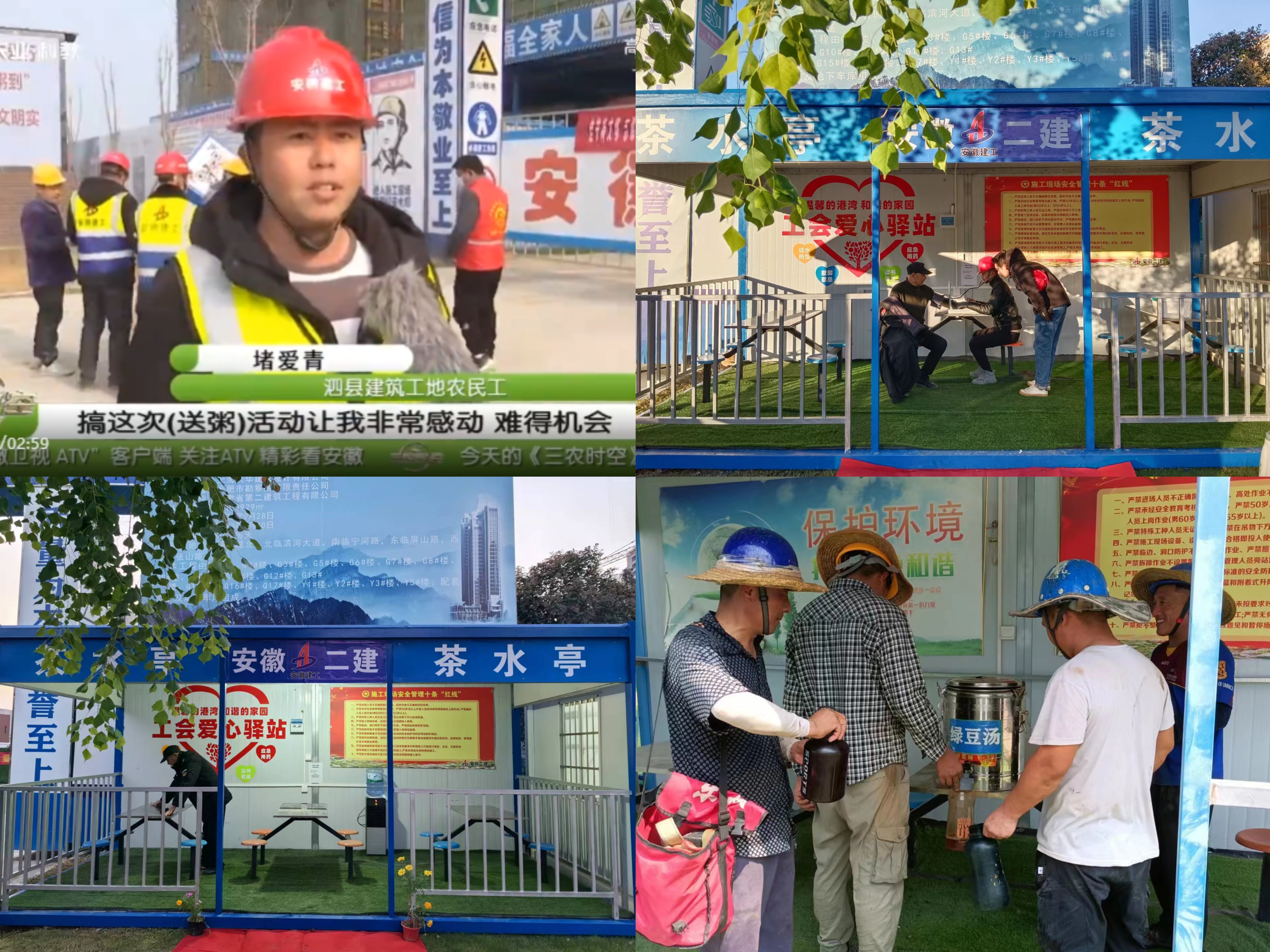 泗縣多金城項(xiàng)目“工會(huì)驛站”建設(shè)面積約40平方米,自開(kāi)工以來(lái),為方便一線(xiàn)工友就餐、休息,設(shè)立了茶水亭、休息室等“工會(huì)驛站”,并配備了純凈水、防暑降溫和外傷應(yīng)急藥品、血壓測(cè)量?jī)x、充電設(shè)施、免費(fèi)WiFi、閱讀室等。通過(guò)定期組織免費(fèi)體檢、防暑降溫藥品和飲品發(fā)放、“臘八節(jié)”送粥等公益服務(wù)活動(dòng),為一線(xiàn)員工提供了一個(gè)溫馨的休憩港灣。