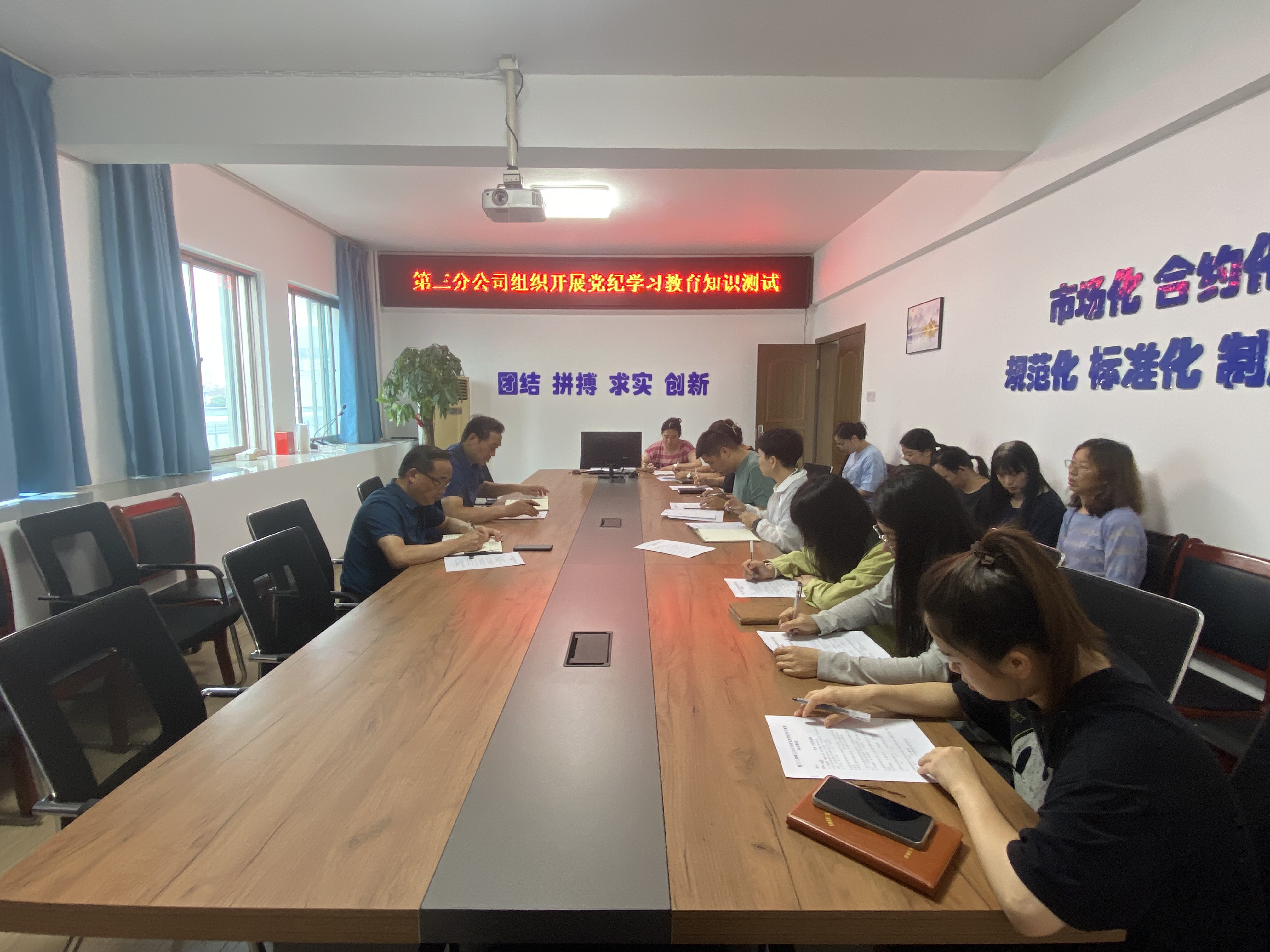 為持續(xù)加強黨紀(jì)學(xué)習(xí)教育,推動黨紀(jì)學(xué)習(xí)教育走深走實,6月26日上午,第三分公司黨支部召開黨紀(jì)學(xué)習(xí)教育學(xué)習(xí)會暨黨紀(jì)學(xué)習(xí)教育知識測試,機關(guān)全體人員參加會議,所屬項目部同步學(xué)習(xí)。