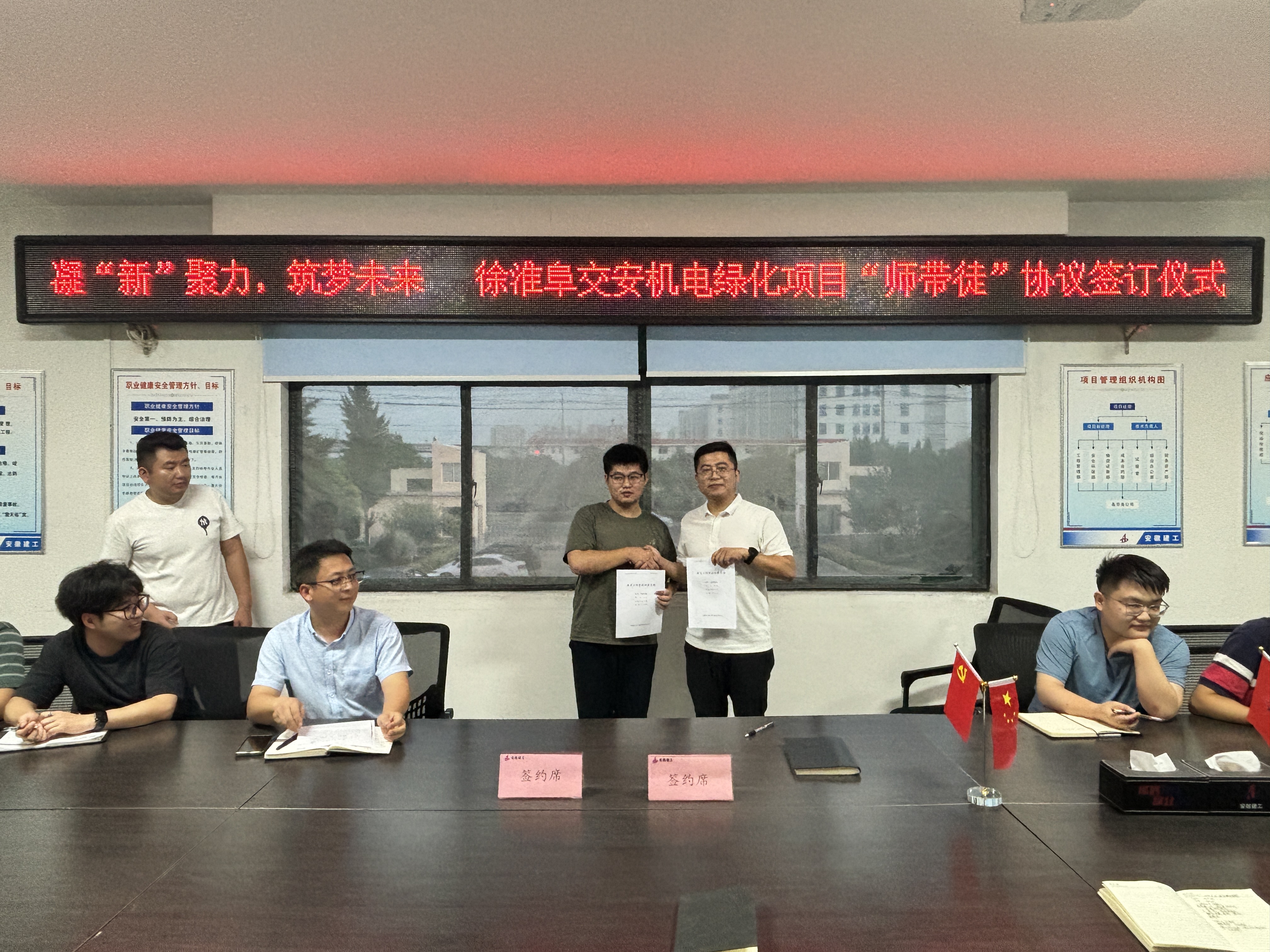 為幫助新員工深入了解公司發(fā)展戰(zhàn)略及經(jīng)營模式,培養(yǎng)和樹立起良好的職業(yè)素養(yǎng),8月22日,徐淮阜交安機(jī)電綠化項(xiàng)目舉辦新員工座談會及“師帶徒”協(xié)議簽約儀式。