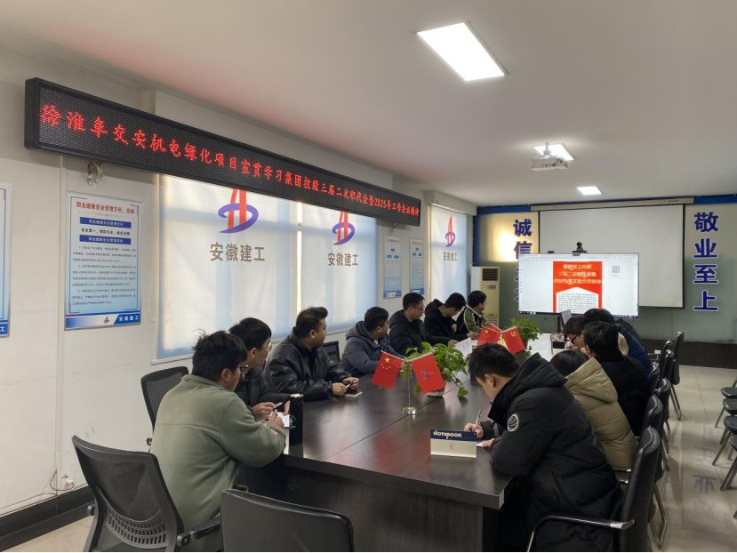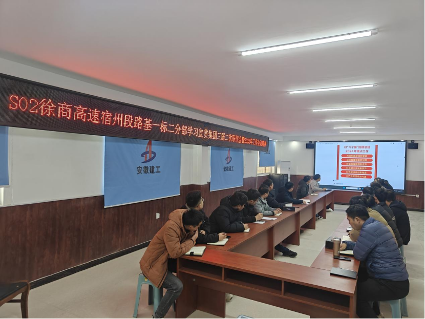 近日 ,安徽建工建設(shè)投資發(fā)展有限公司組織徐淮阜交安機(jī)電綠化項(xiàng)目部和S02徐商高速宿州段一標(biāo)二分部項(xiàng)目學(xué)習(xí)宣貫集團(tuán)三屆二次職代會(huì)暨2025年工作會(huì)議精神,確保會(huì)議精神在項(xiàng)目一線落地生根。