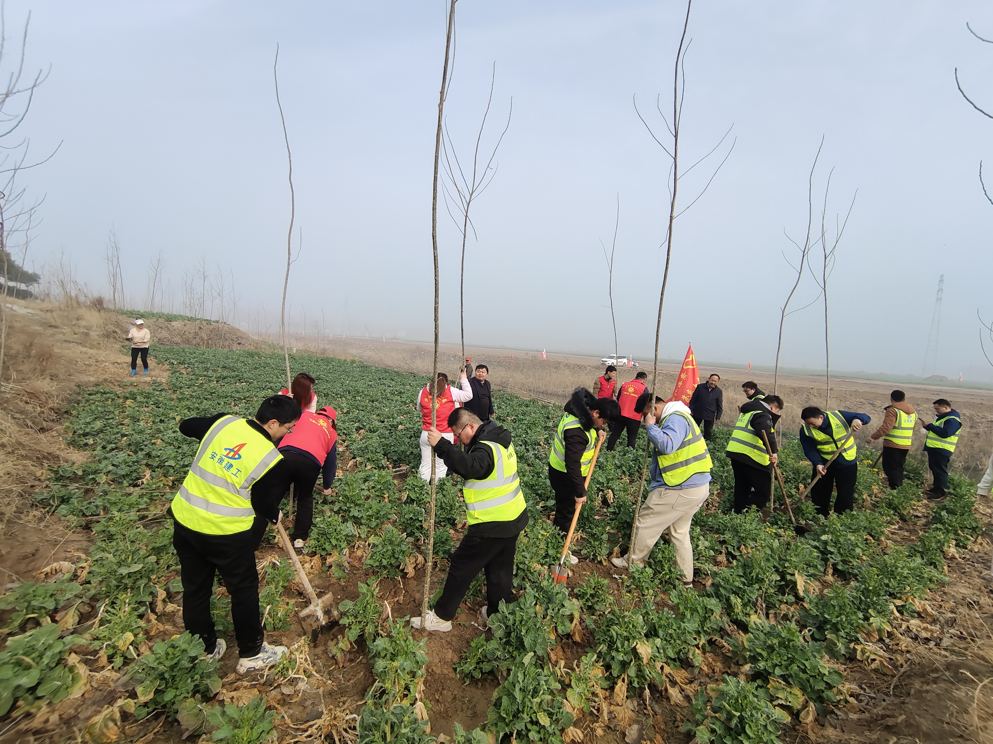 活動(dòng)現(xiàn)場(chǎng),項(xiàng)目部員工與鎮(zhèn)政府職工熱情高漲,干勁十足。經(jīng)過(guò)一上午的辛勤勞動(dòng),百余株新栽種的樹(shù)苗迎風(fēng)挺立,為初春的大地增添了勃勃生機(jī)。