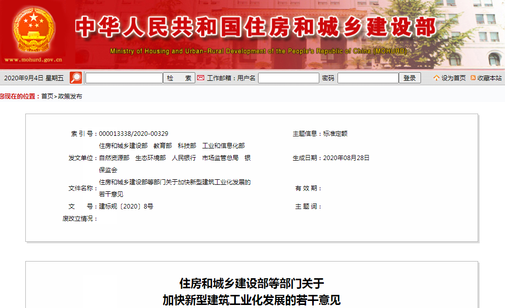 近日,住房和城鄉(xiāng)建設(shè)部、教育部、科技部、工業(yè)和信息化部、自然資源部、生態(tài)環(huán)境部、人民銀行、市場監(jiān)管總局、銀保監(jiān)會9部門聯(lián)合印發(fā)意見,提出要加快新型建筑工業(yè)化發(fā)展,以新型建筑工業(yè)化帶動建筑業(yè)全面轉(zhuǎn)型升級,打造具有國際競爭力的“中國建造”品牌,推動城鄉(xiāng)建設(shè)綠色發(fā)展和高質(zhì)量發(fā)展。