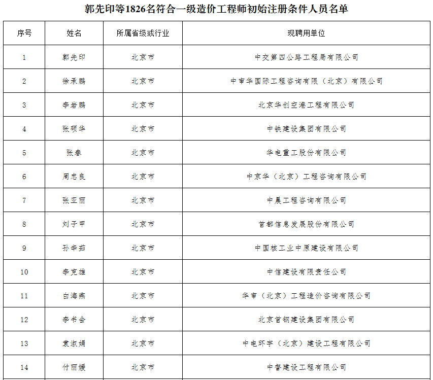 點擊圖片查看符合一級造價工程師初始注冊條件人員完整名單