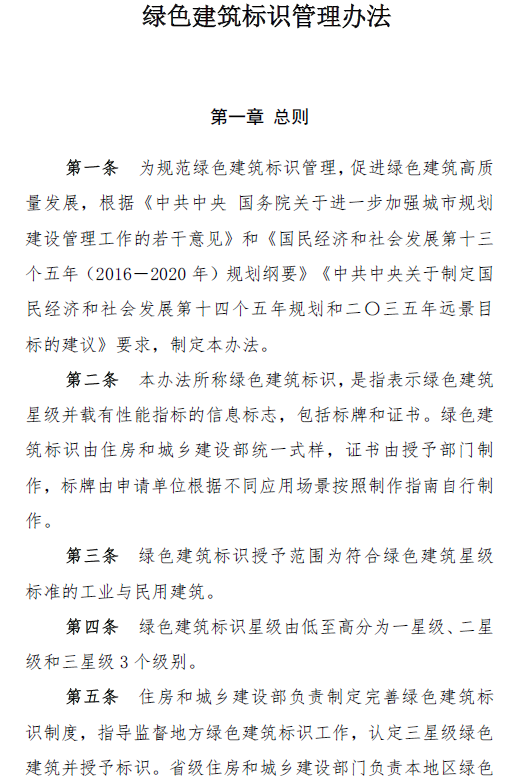 《綠色建筑標(biāo)識(shí)管理辦法》全文如下