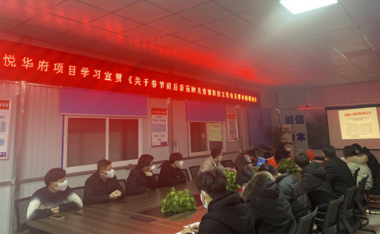 近日,銅陵吾悅華府項目組織學習【關于切實做好2021年“兩節(jié)”期間新冠肺炎疫情防控工作的通知】和【關于春節(jié)前后新冠肺炎疫情防控工作有關要求的通知】,根據文件精神安排部署春節(jié)前后新冠肺炎疫情防控工作,做到早安排早準備,確保本項目在春節(jié)前后無疫情發(fā)生。