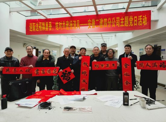 春節(jié)臨近,為營(yíng)造喜慶、祥和、熱烈的新春氛圍,豐富分公司文化內(nèi)涵,弘揚(yáng)中華優(yōu)秀傳統(tǒng)文化。1月29日下午,安徽二建四分公司黨支部組織開展“迎新送福飄墨香,結(jié)對(duì)共建揚(yáng)清風(fēng)”寫春聯(lián)送祝福主題黨日活動(dòng)?;顒?dòng)邀請(qǐng)了安徽省新四軍歷史研究會(huì)淮海委員會(huì)會(huì)長(zhǎng)張振山、副會(huì)長(zhǎng)楊承愉,安徽省書法家協(xié)會(huì)會(huì)員牛中民、朱良謀等一行現(xiàn)場(chǎng)揮毫寫春聯(lián),分公司機(jī)關(guān)近30余人參加了活動(dòng)。