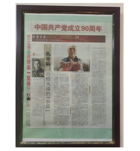孔令科老人,1926年出生,1941年參軍入伍, 1946年加入中國共產(chǎn)黨,14歲加入新四軍,戎馬生涯中參加過抗日戰(zhàn)爭和解放戰(zhàn)爭,多次立下二等功。在講起那段槍林彈雨、戰(zhàn)火紛飛的革命年代時(shí),他不免有些激動(dòng)。令我們印象最深的是在戰(zhàn)爭中有五顆手榴彈滾到了他的腳下,幸運(yùn)的是只有一顆爆炸了,導(dǎo)致右腿右臂受重傷,多處留有彈片。如今95歲高齡的孔老,身體硬朗、思維清晰,始終保持著每天讀書看報(bào)的好習(xí)慣,在靜享慢讀中,沉淀出生活的安靜與從容。如今的和平時(shí)代是無數(shù)革命先烈用鮮血和生命換來的,沒有他們浴血奮戰(zhàn),何來祖國今日繁榮昌盛?百年征程波瀾壯闊,百年初心歷久彌堅(jiān),祖國大地留下的是無數(shù)先輩們奮斗的足跡,流傳著感人肺腑的故事。臨走前,滿頭銀發(fā)的孔老不斷重復(fù)著:“你們生在好時(shí)代,大家都年輕,一定要多讀書多學(xué)習(xí)”。