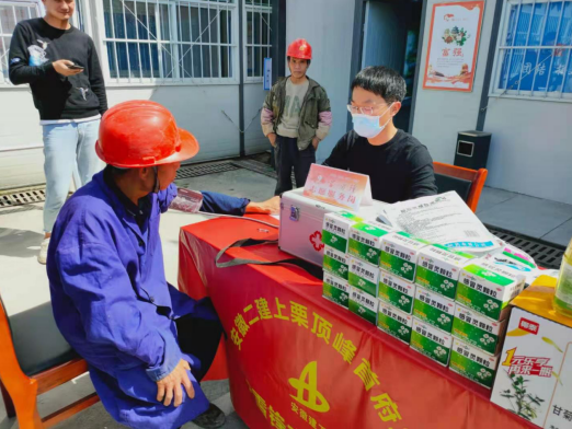 本次活動以“文明新風(fēng)人人創(chuàng),雷鋒精神代代傳”為主題,主要通過設(shè)置學(xué)雷鋒志愿服務(wù)崗,為項目農(nóng)民工測量血壓,免費發(fā)放預(yù)防感冒藥品以及清熱下火飲品等,保障一線民工的身體健康?!耙痪€民工不僅辛苦,面臨的風(fēng)險也大,我們能做的就是為他們的健康保駕護(hù)航。”上栗項目黨支部書記劉振華這樣說。