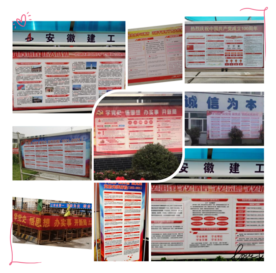 為慶祝中國共產(chǎn)黨建黨成立100周年,鞏固“不忘初心、牢記使命”主題教育成果,引導(dǎo)廣大職工緊緊圍繞學(xué)懂弄通做實(shí)黨的創(chuàng)新理論,做到學(xué)史明理、學(xué)史增信、學(xué)史崇德、學(xué)史力行,分公司黨支部號(hào)召各項(xiàng)目部開展“制展版 學(xué)黨史”活動(dòng)。