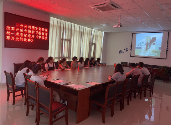 會上,分公司團支部組織開展改革開放專題學習教育活動,觀看紀錄片《中國改革開放的故事》。該片是由英國廣播公司制片人邁克爾·伍德撰稿并主持,主要圍繞“人心所向”、“走向世界”、“中國創(chuàng)造”、“綠色中國夢”以及“未來之路”五個方面所展開,從普通中國人的視角,以相當接地氣的方式講述了中國的歷史和傳承,透過鮮活的鏡頭語言,客觀展示出中國改革開放的脈絡和成就。