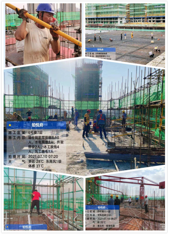 自6月21日公司2021年“學(xué)黨史、保安康、搶工期、爭一流”勞動競賽活動啟動后,一分公司淮北鉑悅府項目立即召開動員會,根據(jù)勞動競賽目標(biāo),梳理各班組施工任務(wù),下達施工任務(wù)書,每天召開安全生產(chǎn)例會,檢查當(dāng)日任務(wù)完成情況,總結(jié)經(jīng)驗,及時分析存在的問題,并制定相應(yīng)糾偏措施,確保完成施工任務(wù)。項目全體員工堅定信心、苦干實干、爭分奪秒、大干快干。截止目前,各樓棟形象進度均按勞動競賽計劃完成,7月計劃產(chǎn)值1400萬,實際已完成產(chǎn)值1523萬元,階段性產(chǎn)值目標(biāo)超額完成。