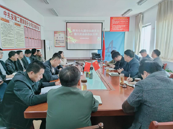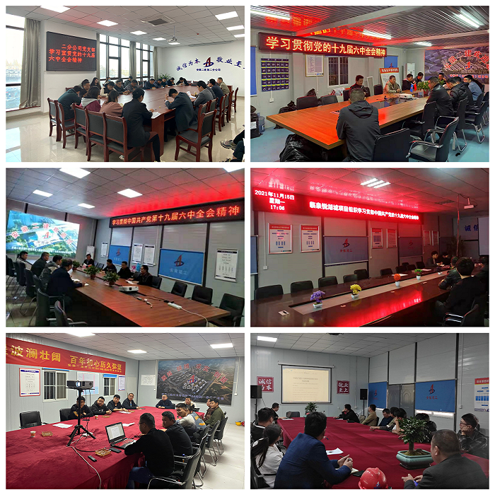 第二分公司黨支部開展“黨員活動(dòng)日”暨專題學(xué)習(xí)活動(dòng),學(xué)習(xí)宣貫黨的十九屆六中全會(huì)及安徽省第十一次黨代會(huì)精神精神。會(huì)議強(qiáng)調(diào),要切實(shí)用會(huì)議精神統(tǒng)一思想、凝聚共識(shí)、指導(dǎo)實(shí)踐、推動(dòng)工作。分公司所屬項(xiàng)目部積極響應(yīng)號(hào)召,開展學(xué)習(xí)宣貫活動(dòng)。