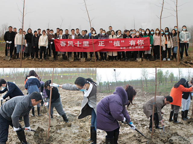 3月18日,安徽二建公司團(tuán)委組織40余名青年志愿者在濱湖濕地公園開展“春風(fēng)十里 正‘植’有你”雷鋒月義務(wù)植樹活動。公司黨委副書記、工會主席王軍、財務(wù)總監(jiān)王干出席活動。