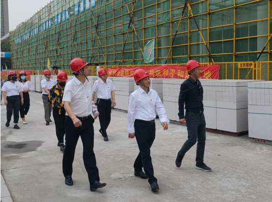 王軍一行首先深入施工現(xiàn)場,詳細(xì)查看了項(xiàng)目現(xiàn)場安全文明創(chuàng)建、工程質(zhì)量、樣板展示、施工進(jìn)度等情況,查閱了黨群工作資料,并到辦公區(qū)、生活區(qū)全面了解職工的工作生活環(huán)境。隨后,在聽取了項(xiàng)目黨支部書記“三號聯(lián)創(chuàng)”的工作匯報(bào)后,驗(yàn)收組對項(xiàng)目創(chuàng)建工作取得的成績給予了肯定,同時(shí)對項(xiàng)目創(chuàng)建過程中不足之處提出了意見和建議。檢查組一行一致認(rèn)為項(xiàng)目“三號聯(lián)創(chuàng)”達(dá)到公司標(biāo)準(zhǔn),通過驗(yàn)收。