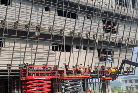 目前,宿州三館一院一中心項(xiàng)目已全面進(jìn)入到裝飾裝修階段,按照下半年生產(chǎn)目標(biāo),項(xiàng)目部針對(duì)室內(nèi)裝修、室外鋪裝、幕墻安裝、鋼網(wǎng)架等工作內(nèi)容細(xì)化階段目標(biāo)和責(zé)任人,每晚組織技術(shù)科、施工科與裝修班組、安裝班組召開(kāi)生產(chǎn)進(jìn)度分析會(huì),對(duì)當(dāng)天問(wèn)題及時(shí)溝通和解決,保證不耽誤生產(chǎn)進(jìn)度。